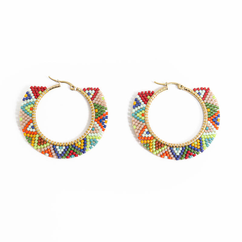 This Dark Salpicon earring is a unique and vibrant choice. Handmade with miyuki glass beads, its multi-colored jewel tones will bring an exciting and eye-catching finish to any look. Its versatility makes it an ideal choice for any wardrobe.