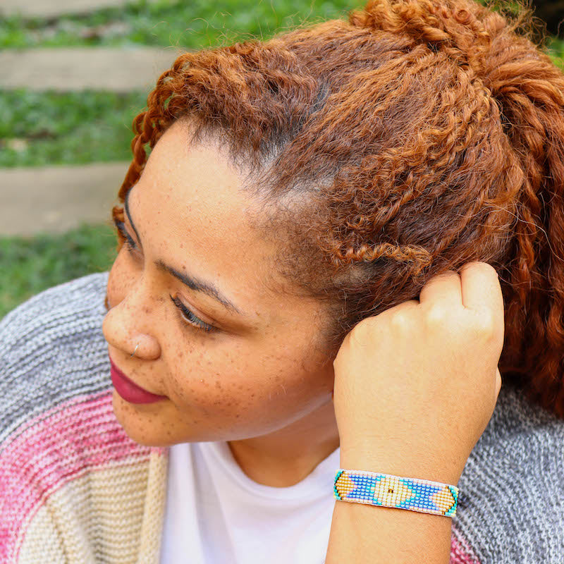 Meet Tulipanes—your new go-to accessory for sunny days and vibrant vibes! This playful, indigenous-inspired bracelet brings together a joyful mix of peach, blue, yellow, and green in a blooming palette that feels like summer wrapped around your wrist.