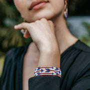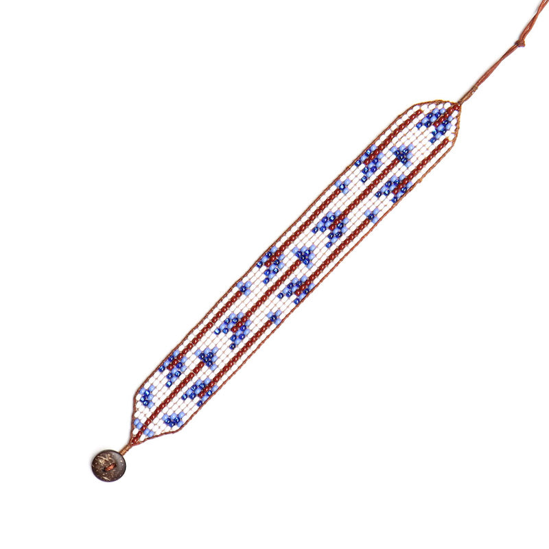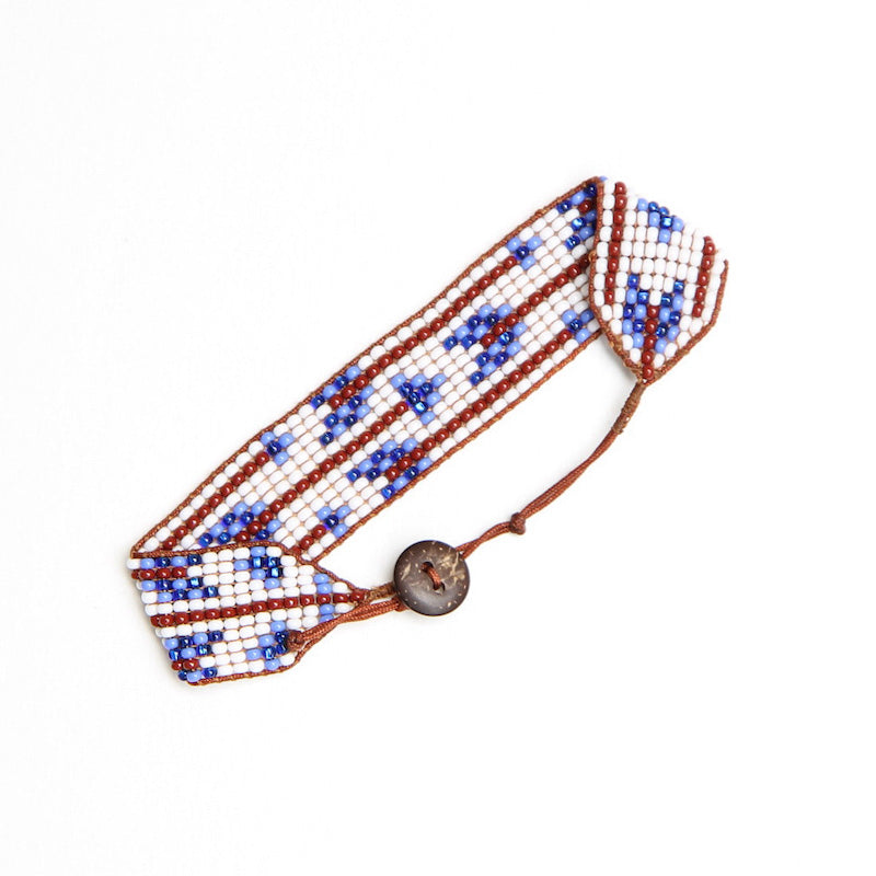 Say hello to Eden—a bracelet that blends earthy charm with a bold pop of personality. This artisanal beauty features a striking blue arrow design, anchored by warm brown accents and crafted with premium Czech beads for that perfect mix of durability and dazzle.
