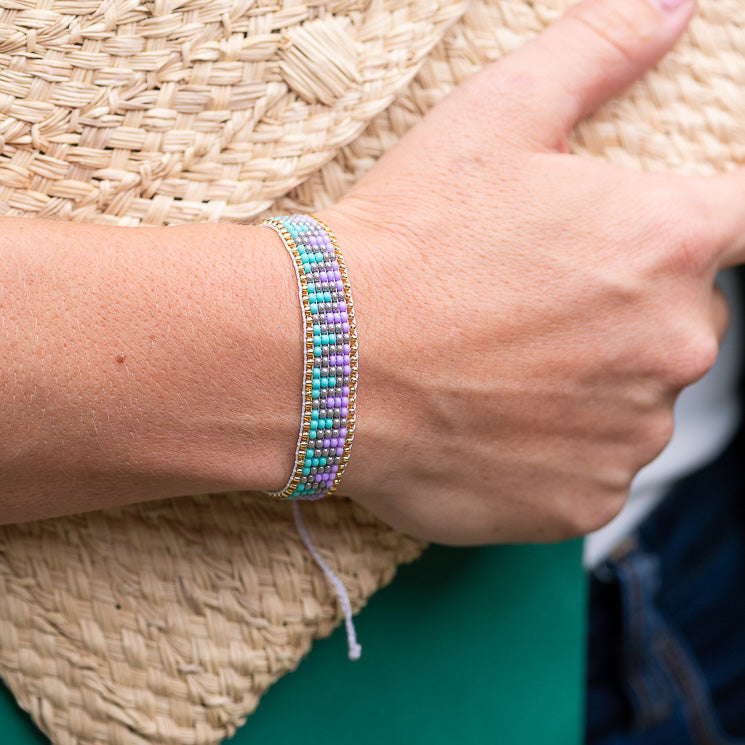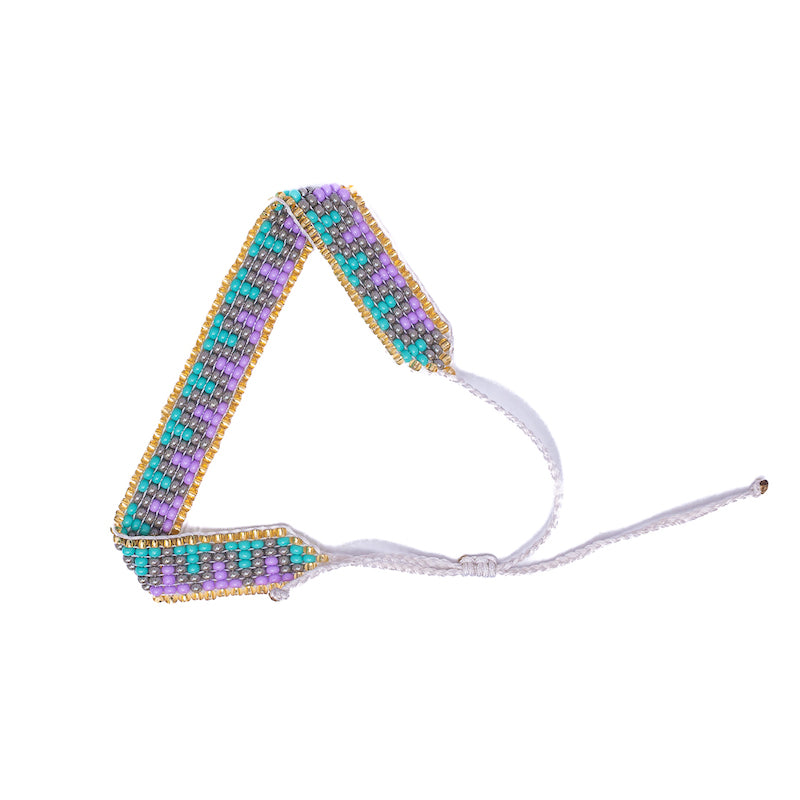 Add a touch of colorful zigzag to your day with this handmade bracelet! It comes with a lush teal and lilac palette, an adjustable closure, and made from Czech beads for quality. Show your wrist some love! 💜